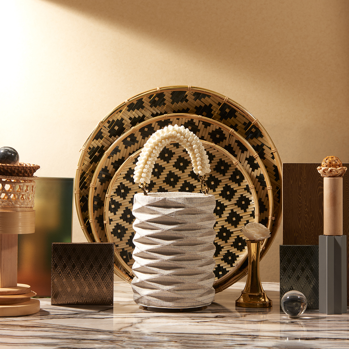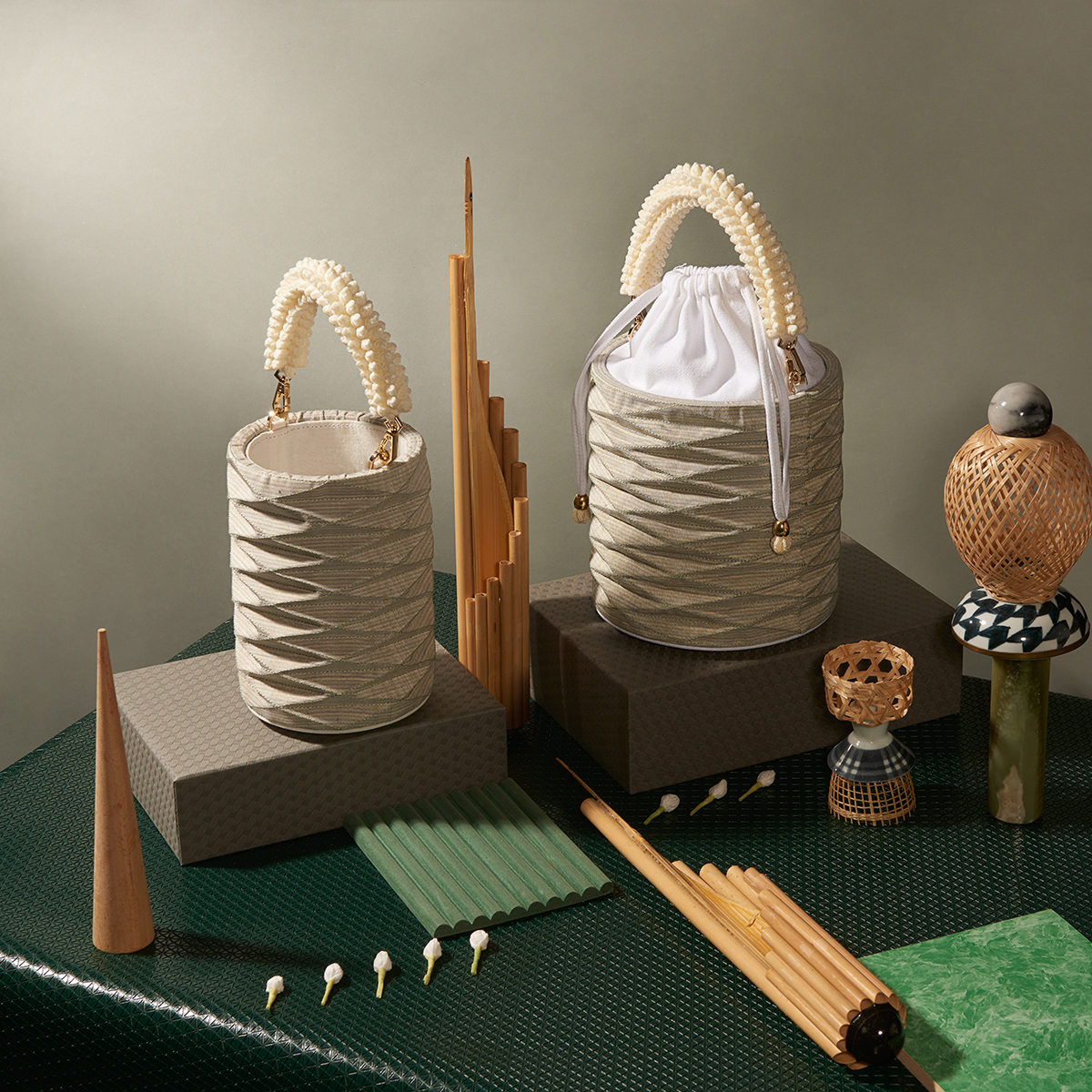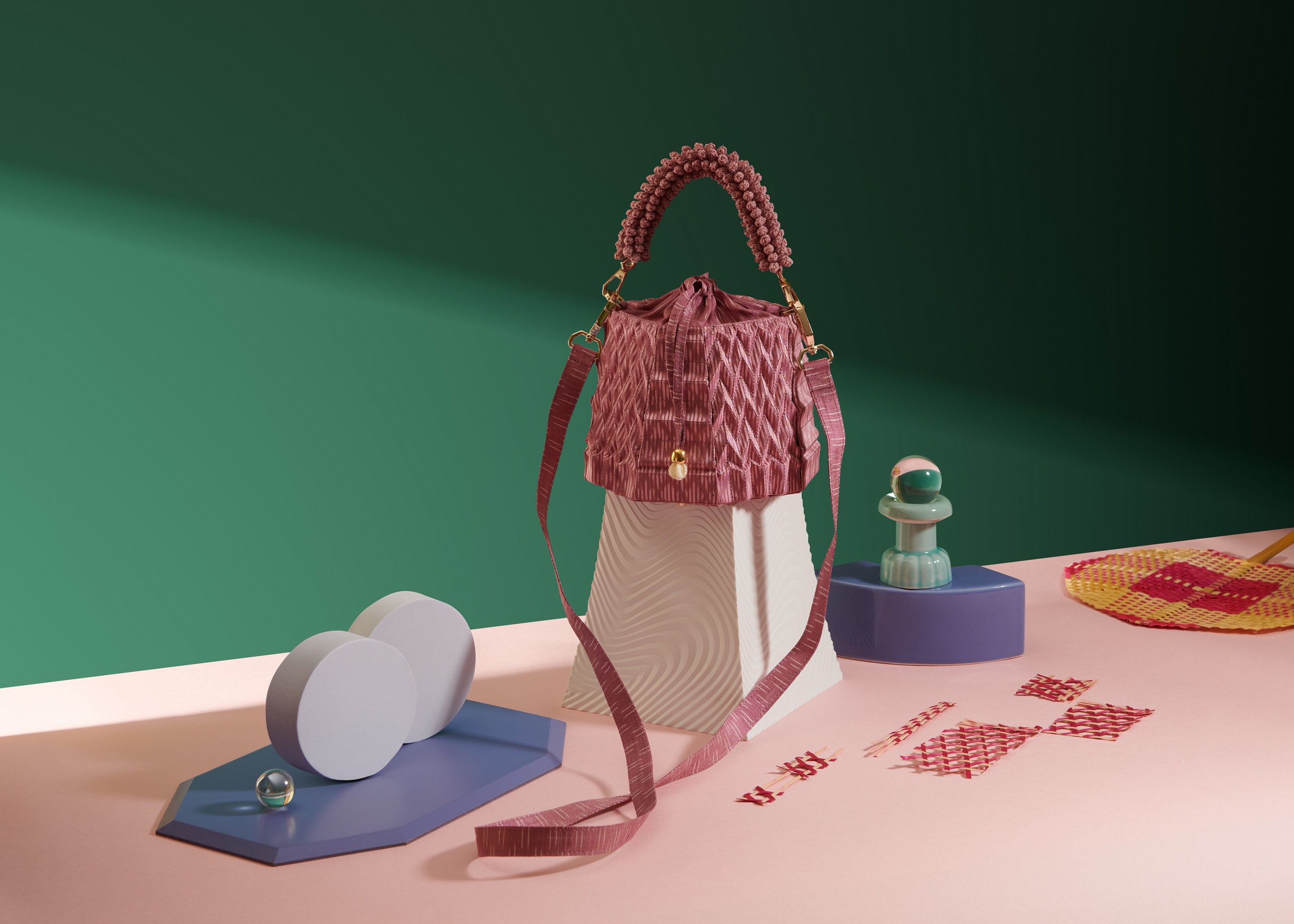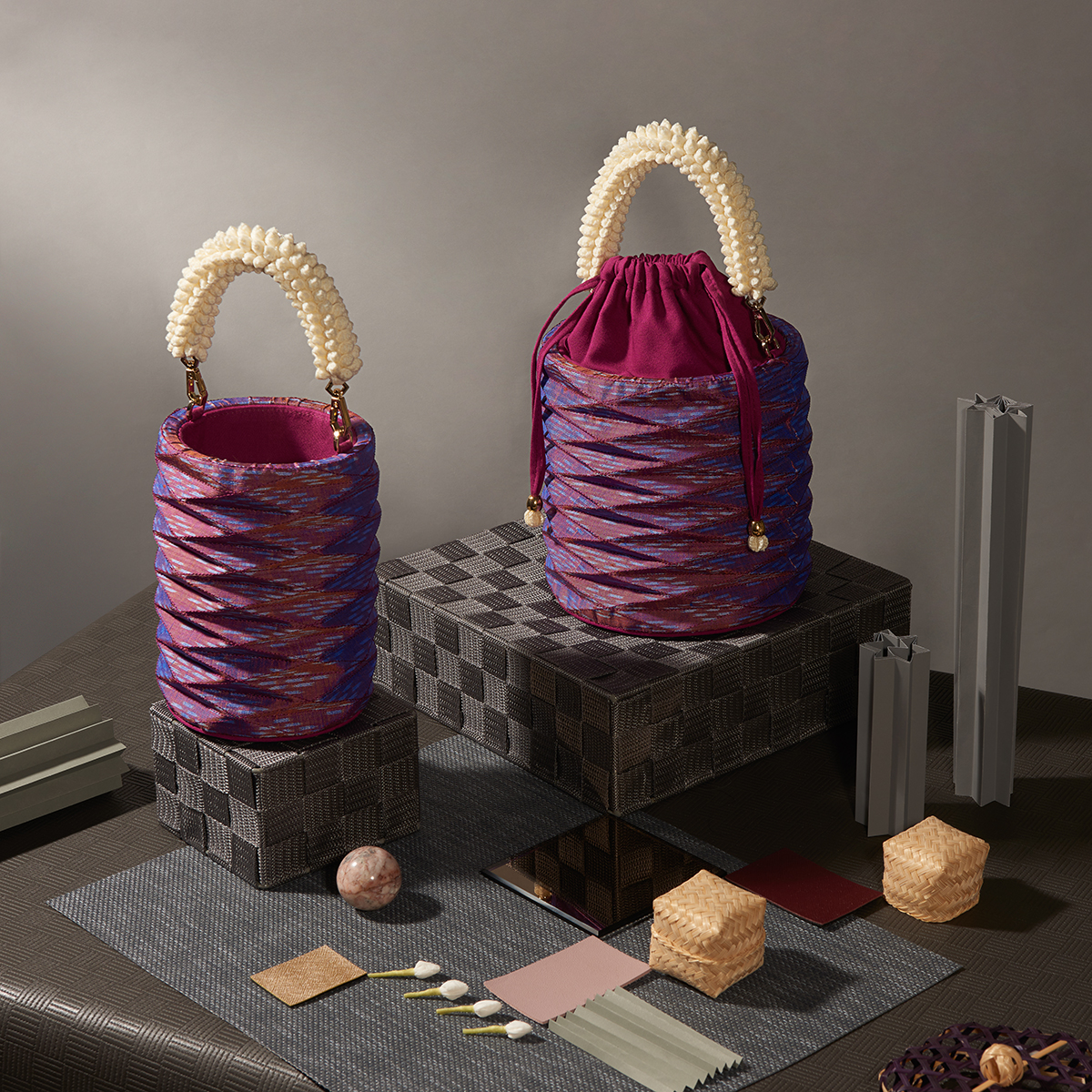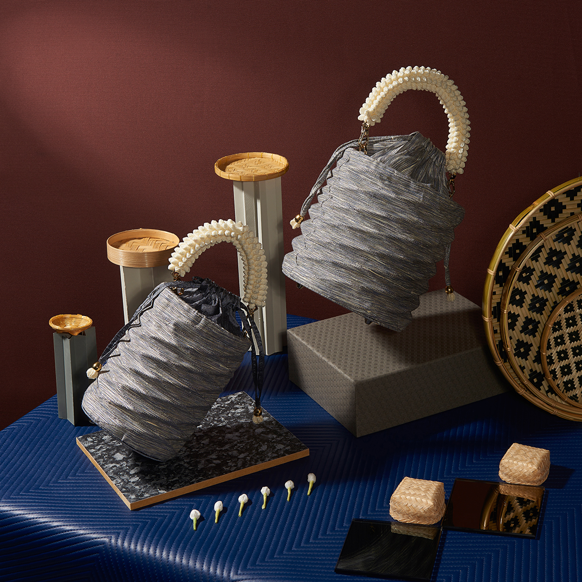 Every bag is inspired by creative craft and cultural wisdom in Thailand. The primary material employed is handwoven silk and cotton. The design creation emphasises experimentation to become unique and different. The folding technique is developed and plays as the brand’s signature characteristic.